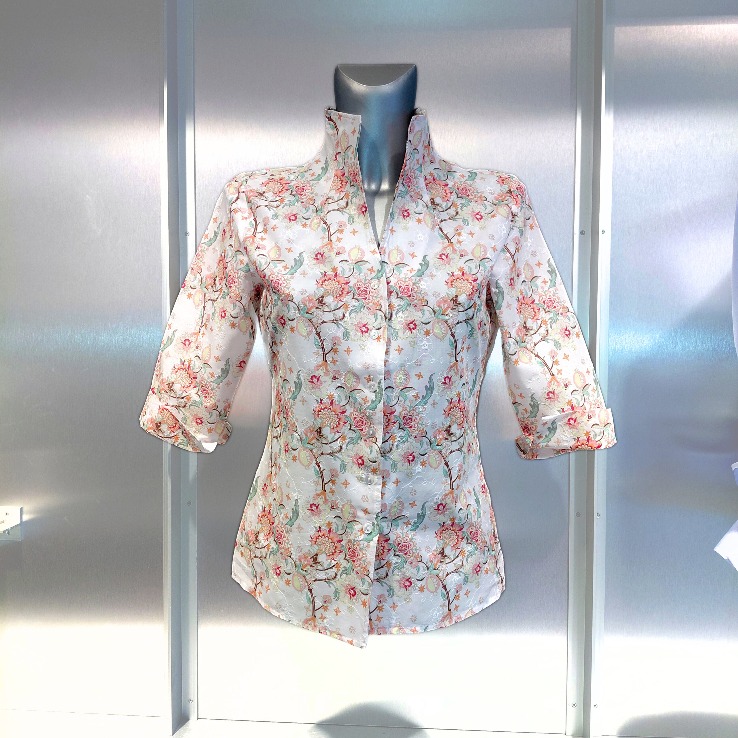 W075 vzorčasta bluza z visokim ovratnikom